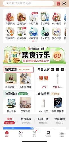 第2年会员权益:在1号店手机端APP中,使用京东账号登陆,首页找到“独家定制”点击进入。